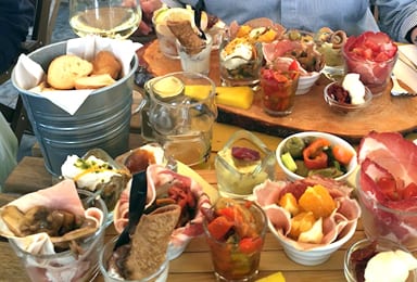 Well, we found an answer in sunny Syracusa in Sicily at the Caseificio Borderi in the historic Ortigia Market that we visited last year. This small market square restaurant does a bustling business in rustic sandwiches based on its wide selection of home made artisanal cheeses and charcuterie. It is also renowned for its appetizer trays that are a veritable feast of small delights. You have a choice of seafood or cured meat platter and both come with an assortment of relishes and appetizers.