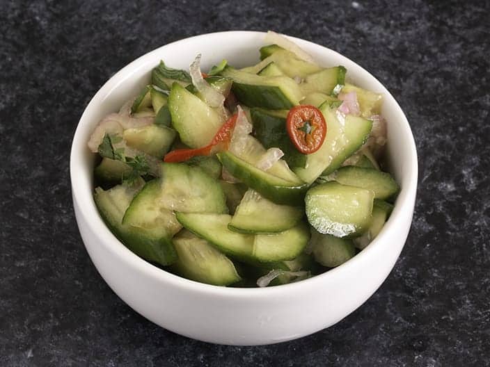 A spicy, sweet vinegar dressing with red onions and fresh coriander gives this relish a distinct Asian flavor. Ideal for poultry, pork and fish.