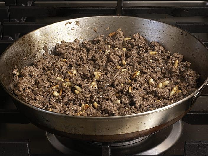 Now that they are available frozen (primarily from Egypt) in most Middle East food stores cooking them is easy. Stuffed with juicy aromatic minced meat, topped with toasted pine nuts and you have a delicious meal in just 40 minutes.